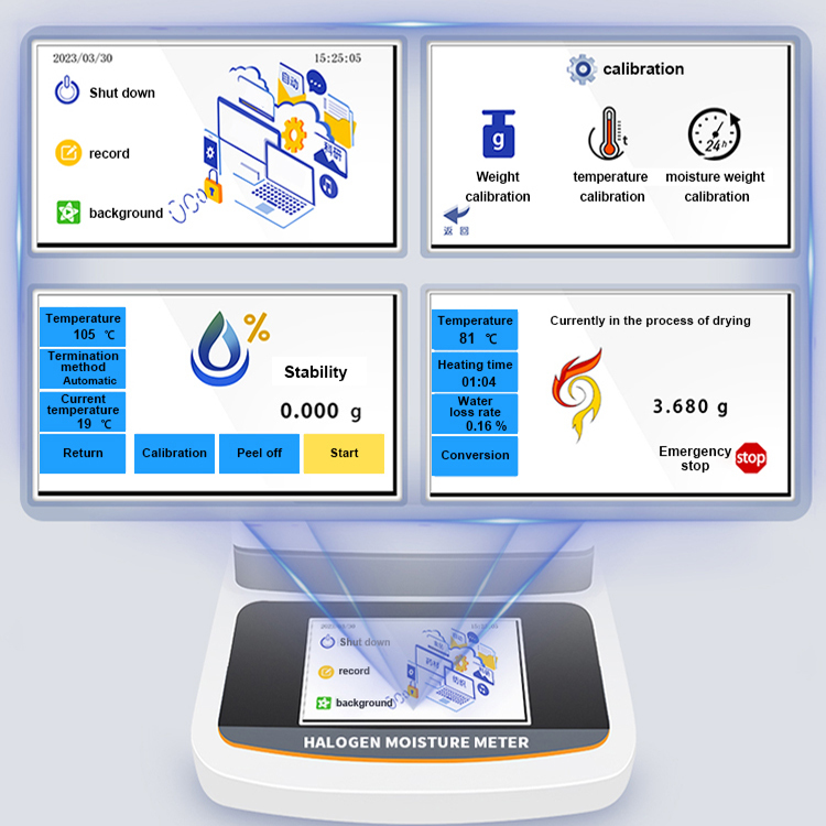 Highlight: | digital halogen moisture analyzer,moisture analyzer with touch screen,halogen lamp heating moisture analyzer |